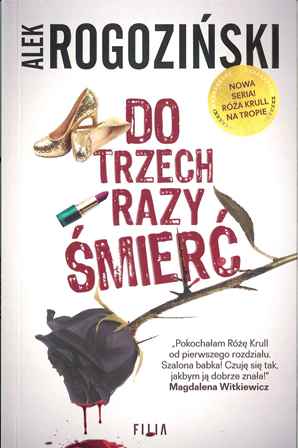 Tytuł: „Do trzech razy śmierć” Autor: Alek Rogoziński Wydawnictwo: Filia Cykl: Róża Krull na tropie Seria: Mroczna strona Projekt okładki: Olga Reszelska Korekta: Baltazar Wydanie: I Oprawa: miękka (ze skrzydełkami) Liczba stron: 322 Data wydania: luty 2017 (przybliżona data) ISBN: 978-83-8075-194-1 Źródło – skrzydło książki.