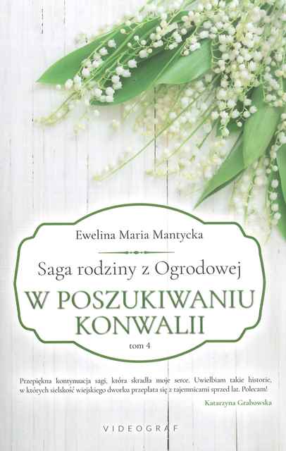 Stanowi t. 4 cyklu : t. 1 Słoneczniki po burzy ; t. 2 Duszący zapach bzu ; t. 3 Bukiet pełen róż. Ewa Jabłońska nie sądziła, że powrót do Czarnowa będzie dla niej taki trudny. Teraz ma swoje życie w Inverness, musi jednak odnaleźć w sobie siłę, aby odtworzyć wydarzenia tamtego dnia, gdy Izabela Leszczyńska straciła życie. Dlaczego dziewczynka ciągle nawiedza ją w koszmarach? Czy Ewa może odzyskać spokój, tylko gdy wyzna prawdę ludziom, którzy jak ona obwiniają się o śmierć dziecka? Jakie sekrety skrywają listy ozdobione kwiatami konwalii? Kiedy Rajmund próbuje na nowo ułożyć sobie życie, pojawiają się dwie Ewy – jedna, która kiedyś mieszkała po sąsiedzku, rozbudza w nim zapomniane pragnienia, druga wywołuje konflikty, w których porażka może oznaczać dla Raja utratę dzieci i własnego serca. Nienawiść do prababki Rozalii rodzi szaleństwo w umysłach tych, którzy nadal wierzą, że Żmudzcy nigdy nie powinni odzyskać dworu. Kim są osoby, które zagrażają rodzinie z Ogrodowej? [https://lubimyczytac.pl/ksiazka/4998726/w-poszukiwaniu-konwalii]